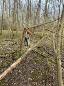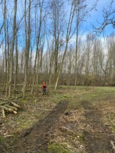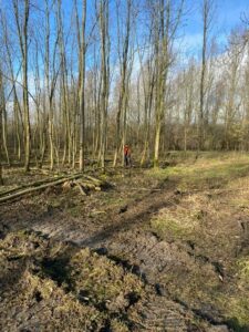 In het bos van Staatsbosbeheer aan de Watersnipweg te Almere heeft de groep een start gemaakt op weg naar het behalen van het kettingzaag certificaat.