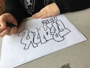 Thijmen van de Bonte Hond kwam naar de Tom Poes om een workshop Graffity letters te geven aan de eerste jaars klassen.