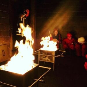 De inhoud van het programma was gebaseerd op “(brand)veiligheid” en “wat te doen als er brand is”. Na een kort stukje theorie was het tijd om een overall aan te trekken en de zogenaamde “brandbanen” op te gaan om de theorie in de praktijk te brengen. Door het te doen, leer je!