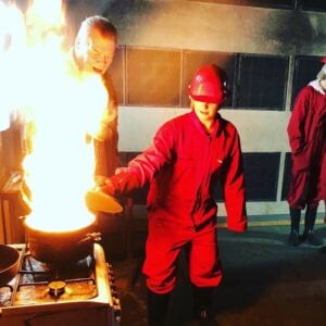 Niet alleen de leerlingen, maar ook de aanwezige Rotary leden en docenten van de Pro School namen deel. In twee groepen hebben de leerlingen branden zoals “vlam in de pan”, brandende afvalbak, geblust en ook ervaring opgedaan in het gebruik van een CO2 blusser en slanghalspel. Daarna was het de beurt om in de “hittekamer” te ervaren hoe snel de temperatuur in een ruimte stijgt op het moment dat er brand is. De leerlingen hebben buiten nog een demonstratie gezien waarom je een vetbrand NIET moet blussen met water. Terug in het lokaal hebben beide groepen aangegeven dat het een leerzame ochtend is geweest en men ook beter gaat opletten waar brandblussers hangen en of de vluchtwegen bereikbaar zijn.